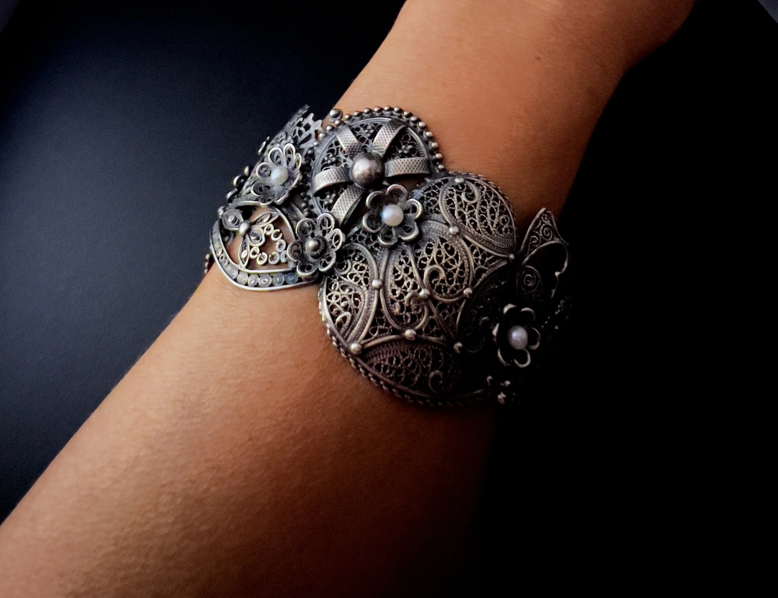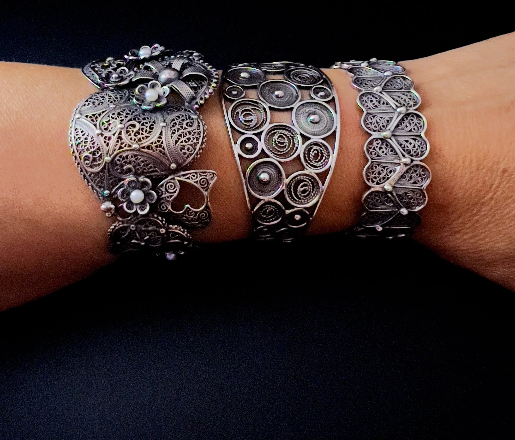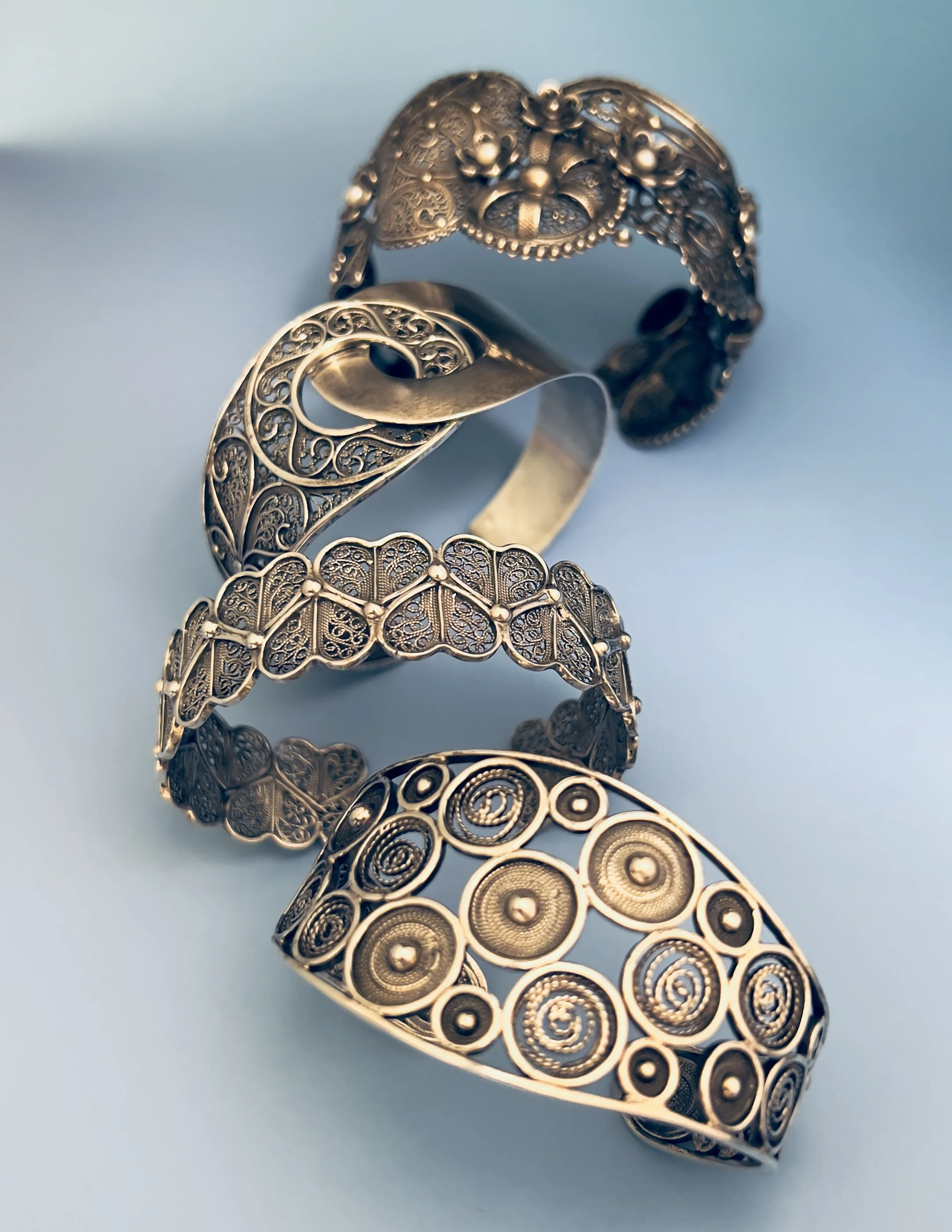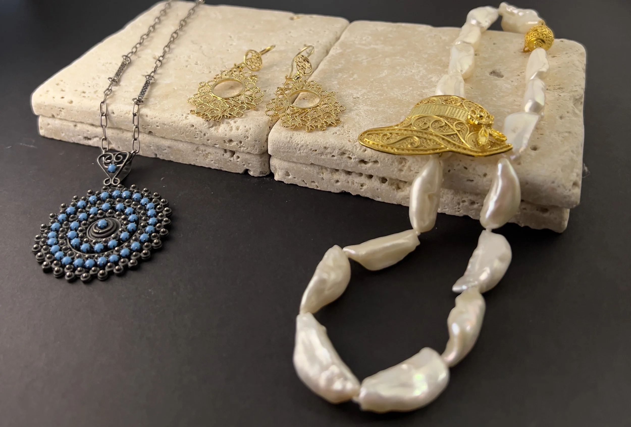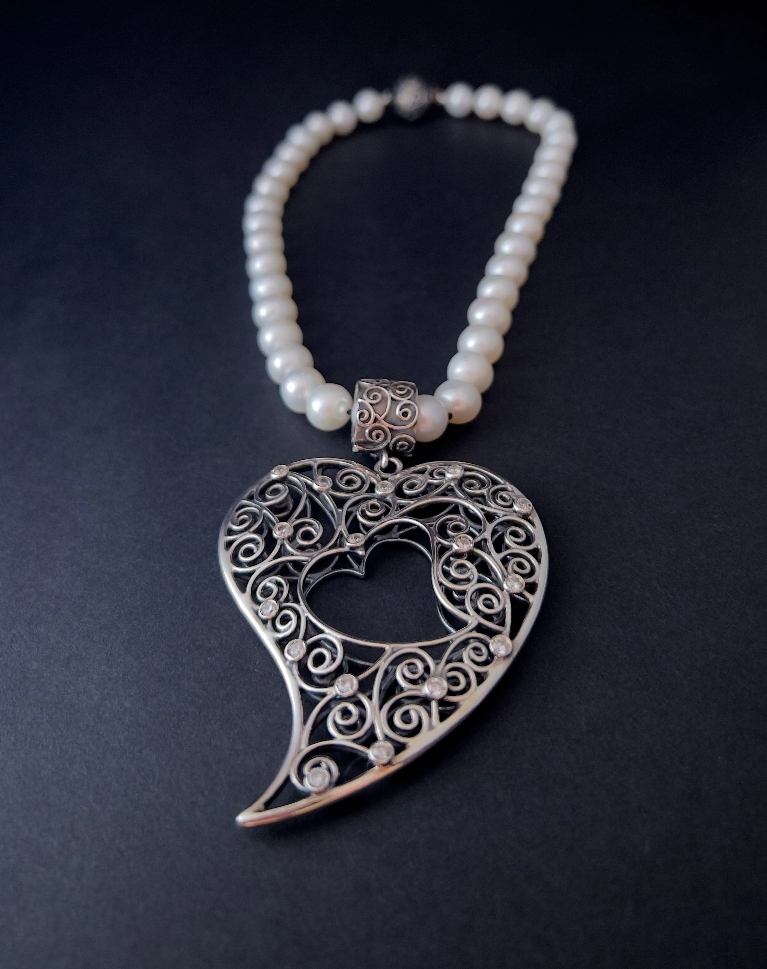 Categories: All Necklaces Bracelets Earrings Objects All | Necklaces | Bracelets | Earrings | Objects | Sterling silver gold plate Viana necklace $800.00 Crystal Whisper with Baroque Pearls $350.00 "Chai" pendent in a Pearl Necklace $800.00 Viana Heart Clasp Necklace $1,000.00 Filigree Open Heart $1,250.00 Vintage Hat Necklace $550.00 Murano glass heart necklace $650.00 Memories Filigree Bangel $450.00 Circles Filigree Bangel $350.00 Sentimental Earrings $150.00 Sentimental heart filigree $175.00 Light pink pearl filigree earring $129.00 Swirl filigree earrings $120.00 Silver-plated Tea Set with Ebony wood $3,200.00 Silver-plated Candlestick | Sospiri $1,100.00 Silver-plated Candlestick | Lipari $1,030.00 Silver-plated Vase Shine/ Mate $650.00 Free Shipping over $150
